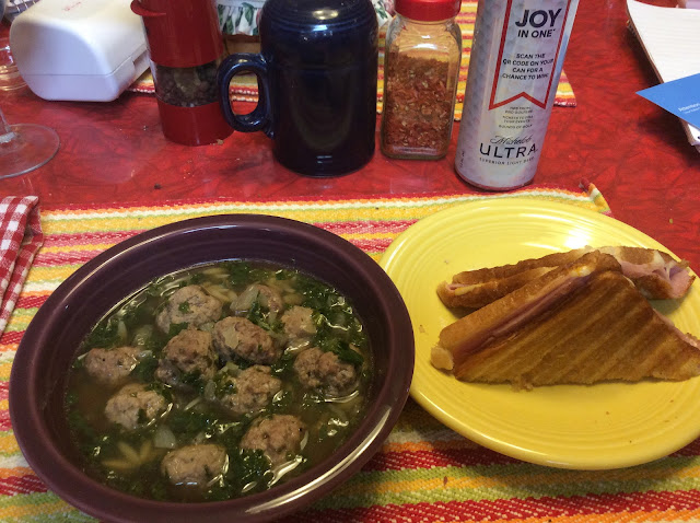 This was SOOOOOOO GOOOOOOD !!!! I got out the Panini Press, and made up a couple of Ham & Cheese sandwiches, It went great with the meatball soup.