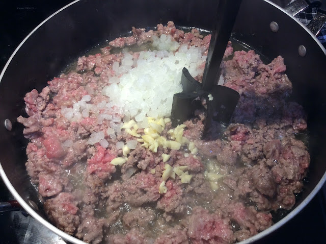 Add the spaghetti sauce, water, tomato sauce, tomato pasteAdd the rest of the spices.Bring to a boil.